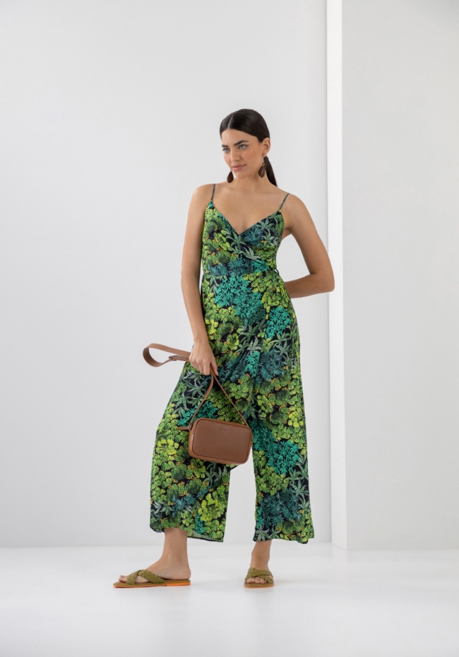 • Macacão Midi Transpassado em Viscose Estampado – Lez a Lez