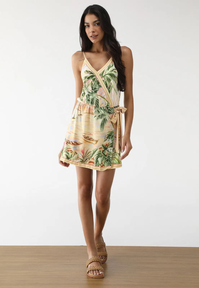 • Vestido FARM Curto Pintura Tropical Amarelo