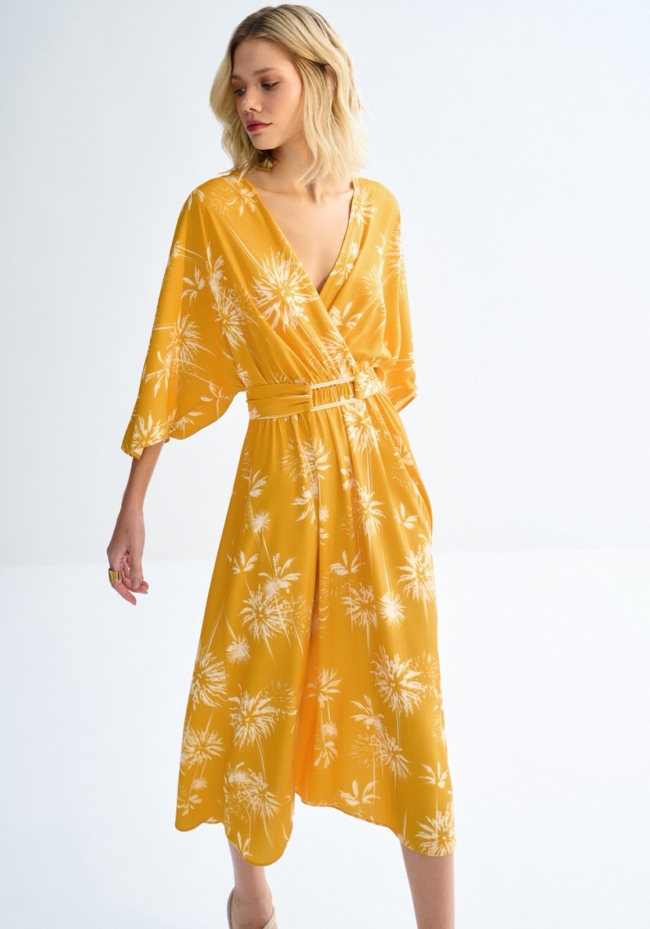 • Vestido Midi Estampado em Viscose Lurex com Cinto – Lez a Lez