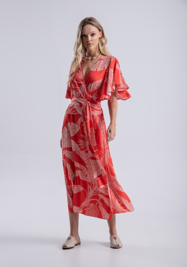 • Vestido Midi Estampado Transpassado com Manga Flare – Lez a Lez