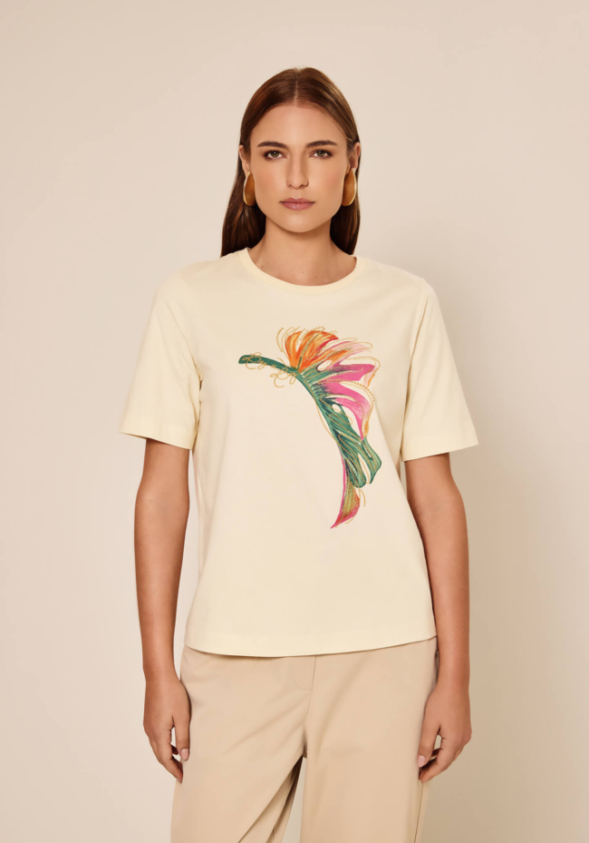 • T-shirt Curta Com Bordado Em Malha Penteada – Lez a Lez