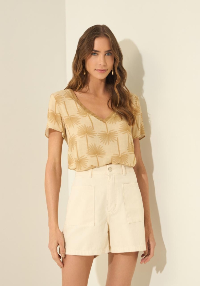 • Blusa Estampada Com Decote Em V E Mangas Curtas – Lez a Lez