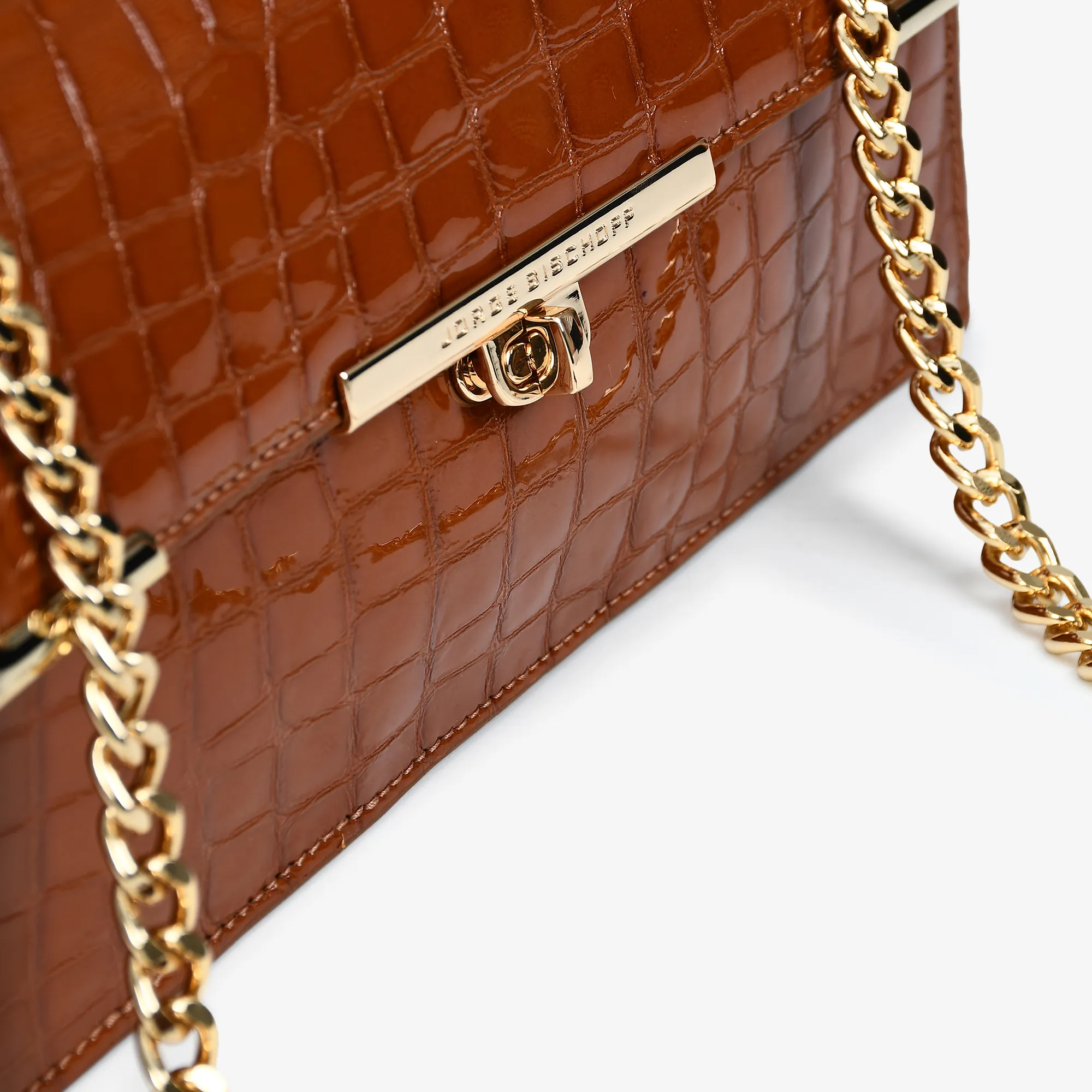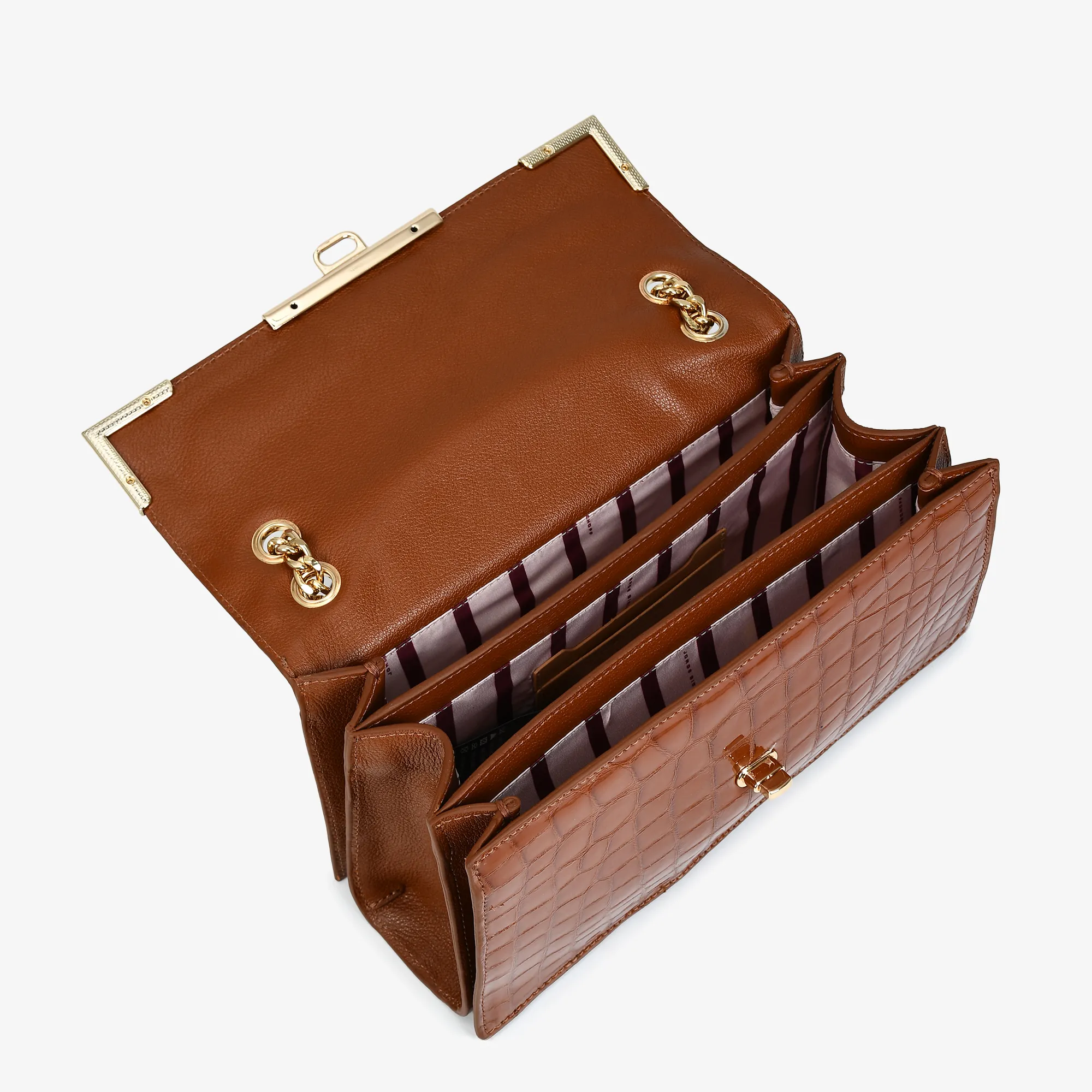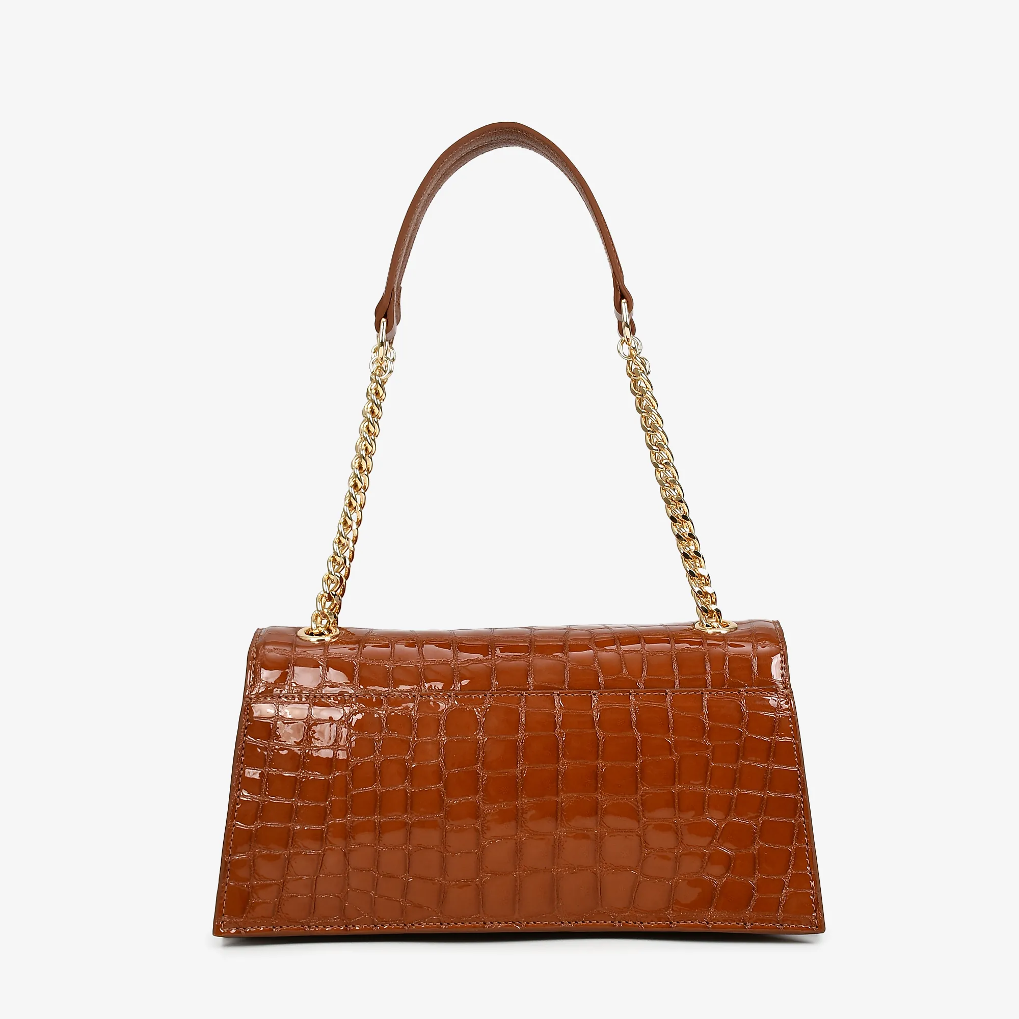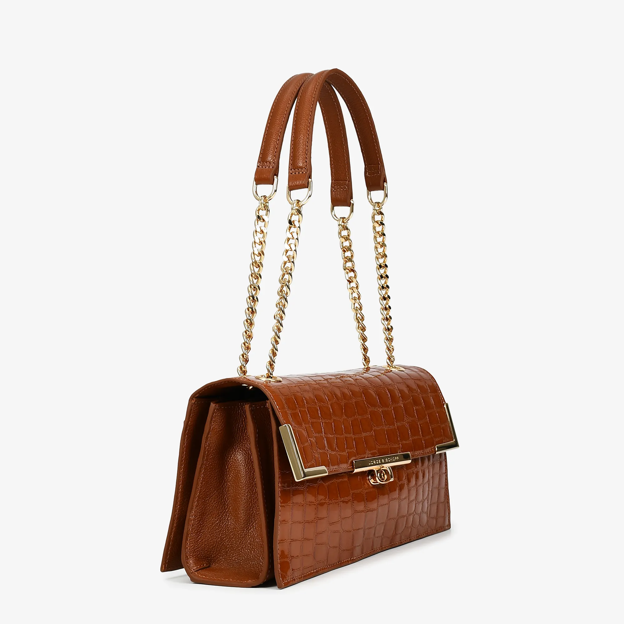 Bolsa De Ombro Marrom Tabaco Couro Croco – Jorge Bischoff