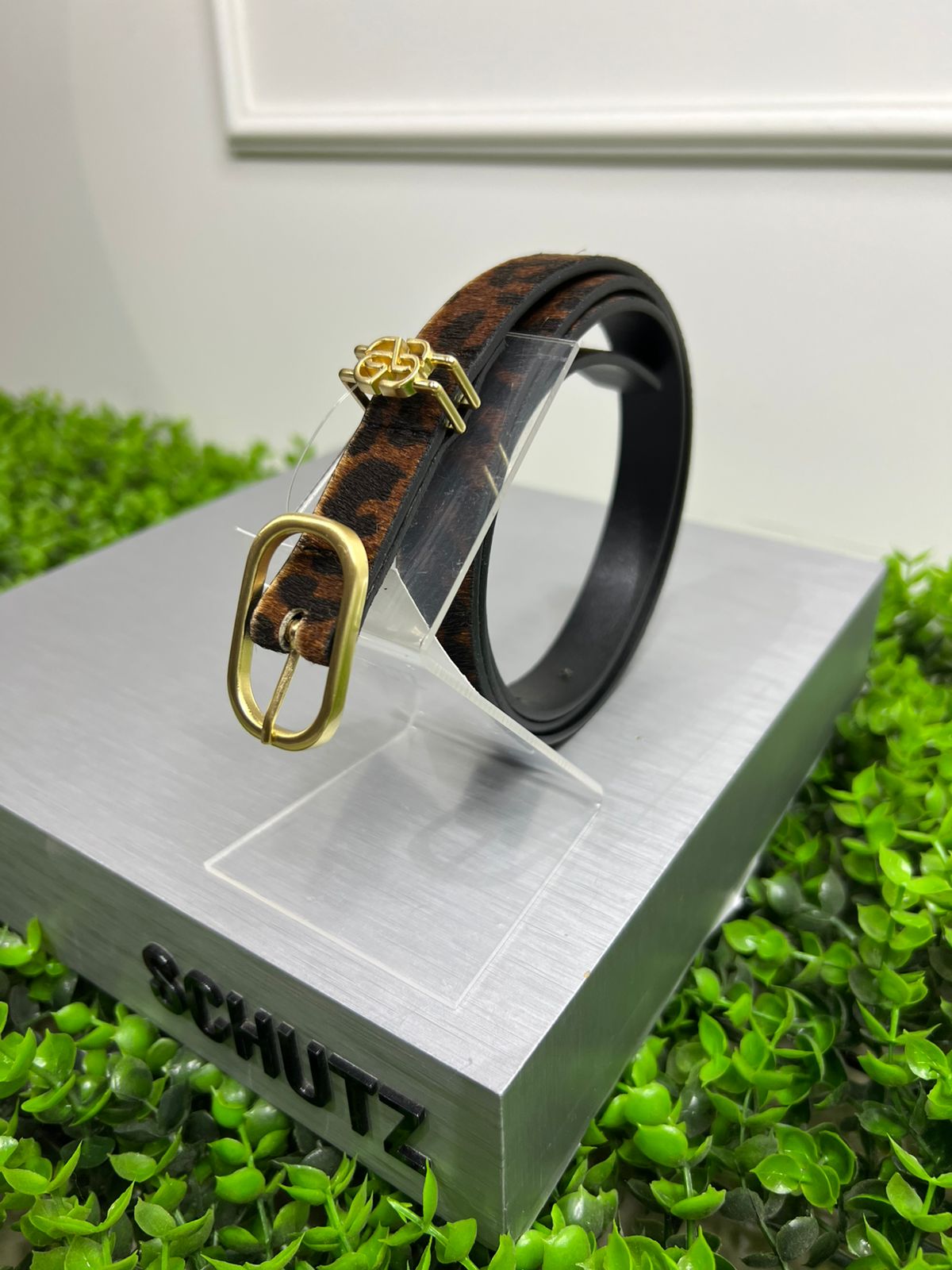 Estiloso e marcante, o cinto Schutz com estampa animal print traz fivela dourada e detalhe do logo da marca. Ideal para adicionar personalidade e elegância aos looks, elevando produções casuais e sofisticadas com um toque moderno.
