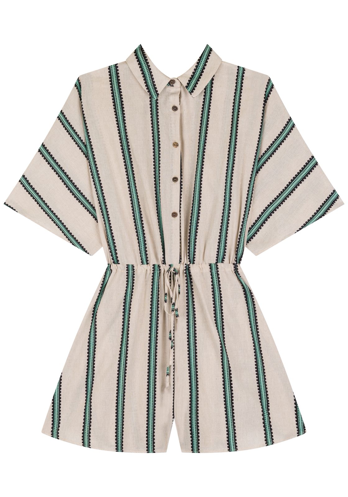 Macacão Curto De Mangas Curtas Com Botões E Amarração – Lez a Lez