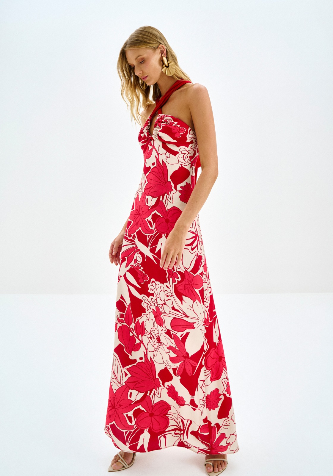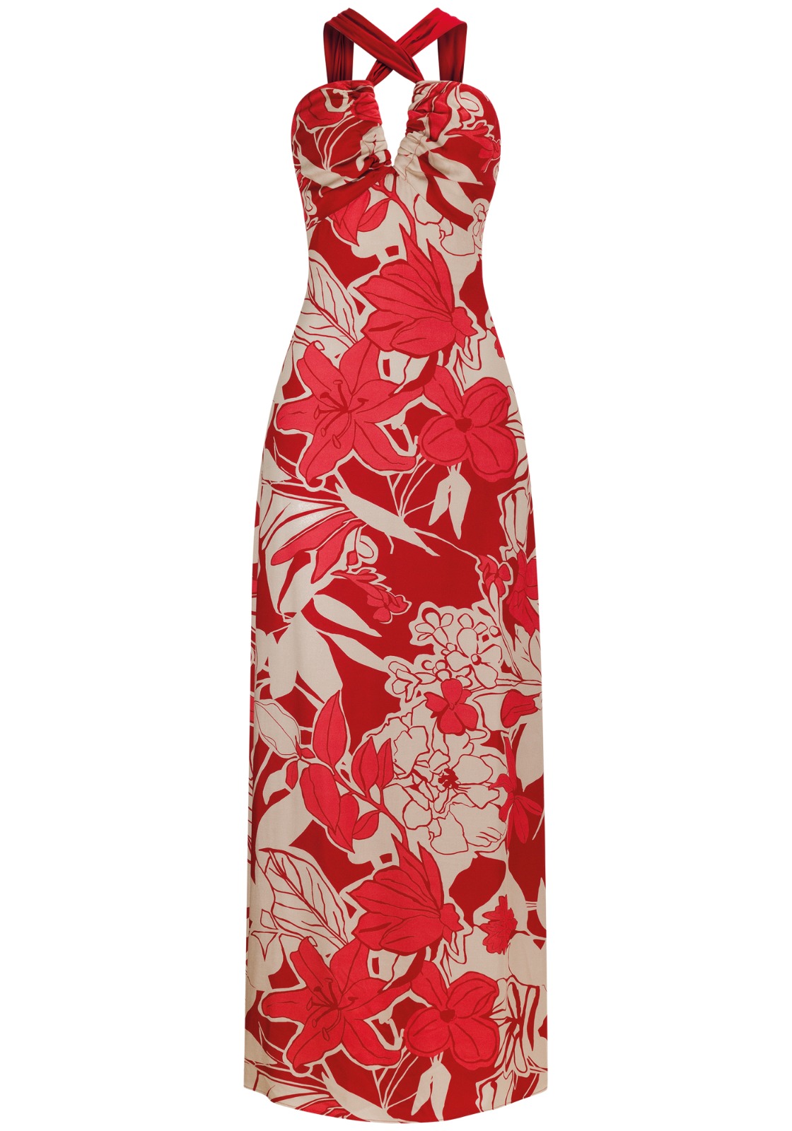 Vestido Longo em Viscose Estampado Cross Neck – Lez a Lez
