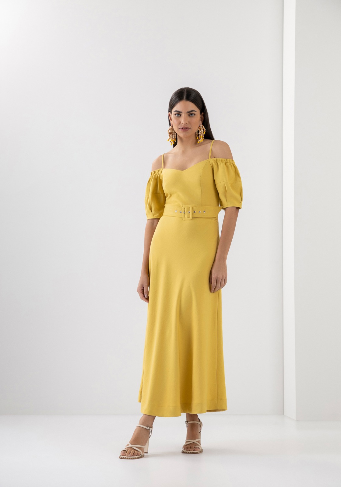Vestido Midi com Recorte Ombros e Cinto – LEZ A LEZ